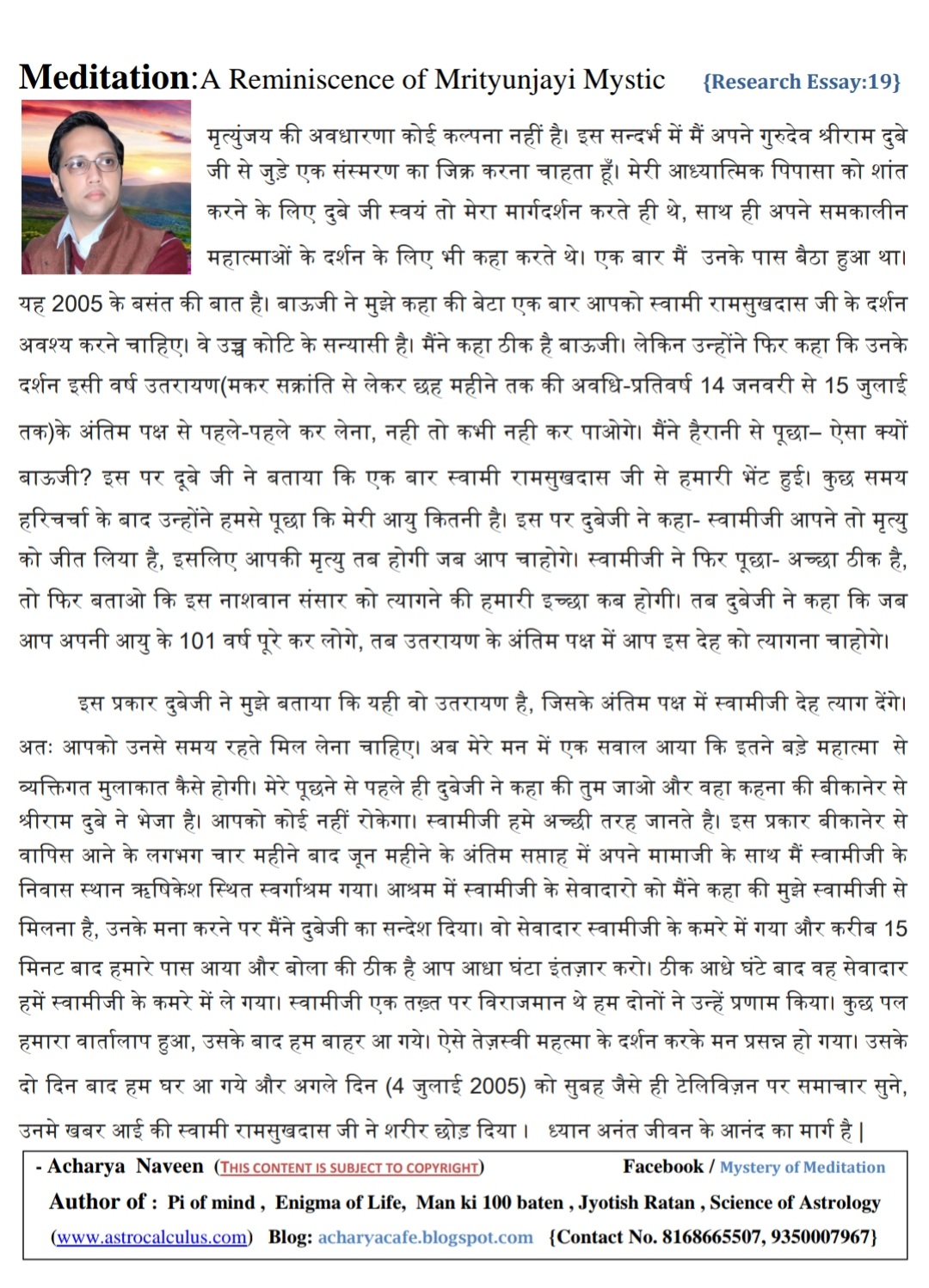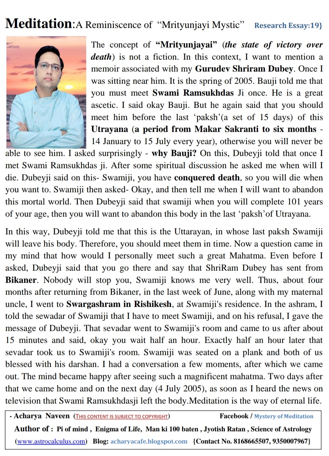 मृत्युंजयी महात्मा से मुलाकात
